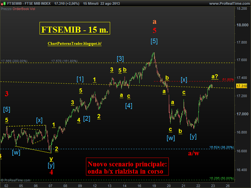 PS: col senno di poi (che non vale un c....) non ho dato troppa importanza all'analisi di Fibonacci che individuava come obiettivo il cluster di prezzo a 17.570 (post 14 agosto); invece era un buon segnale di uscita visto che l'indice ha toppato lo 0.6% sopra, un errore accettabile...